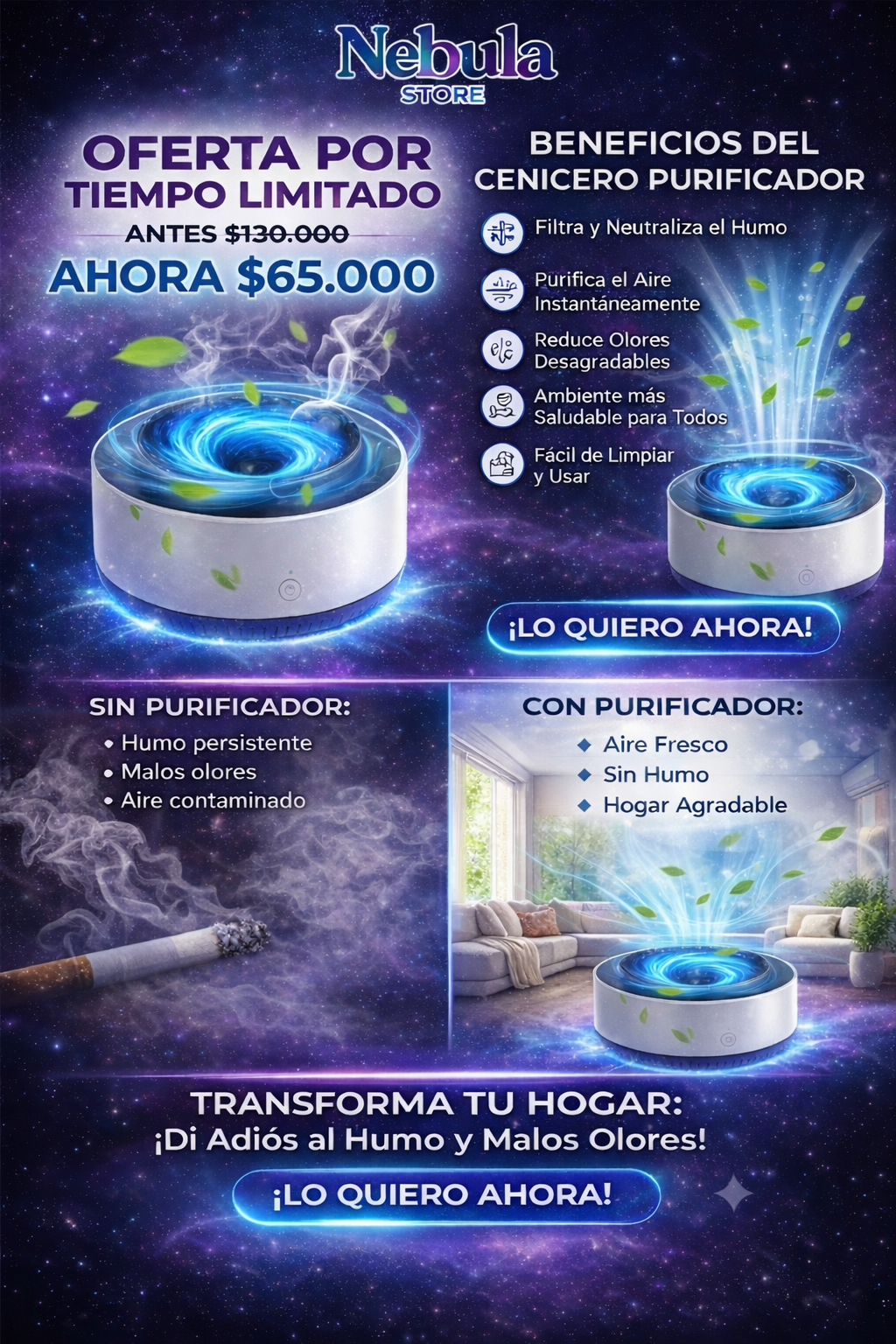 Nuestro cenicero eléctrico, absorbe el humo y purifica el aire 🍃